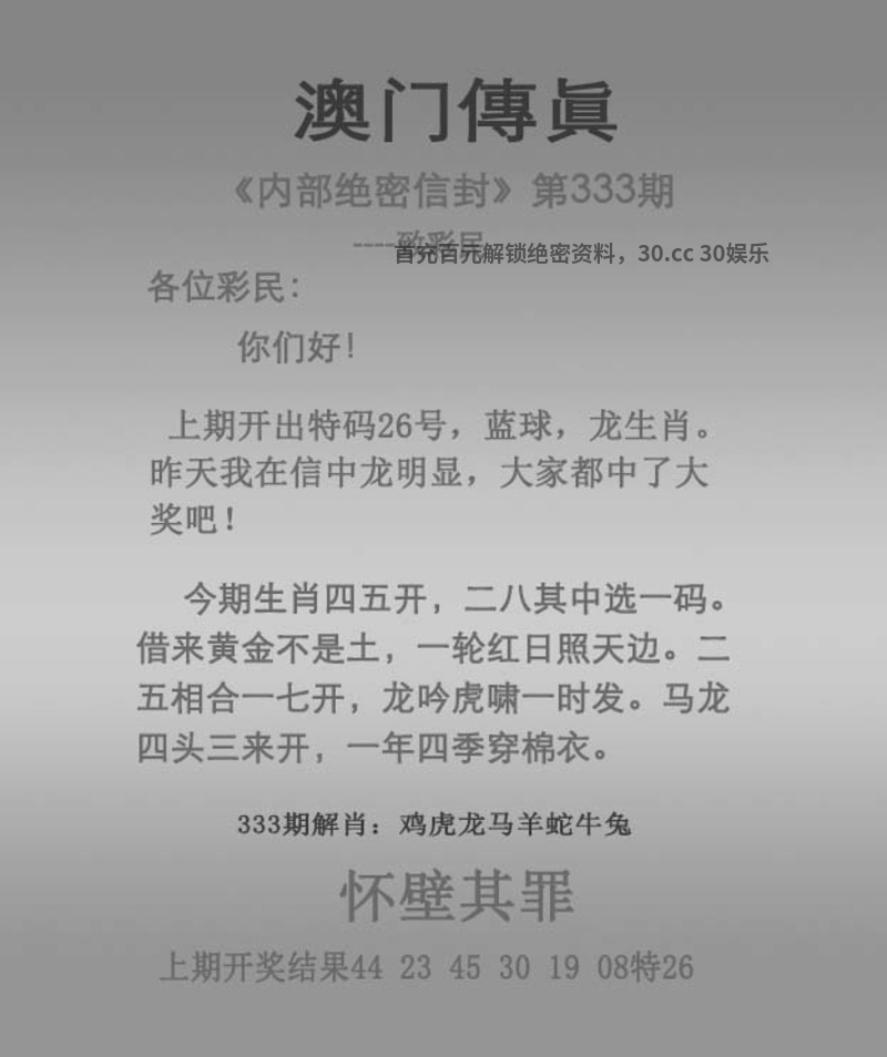 338期: 26333澳门玄机内幕三连肖必中